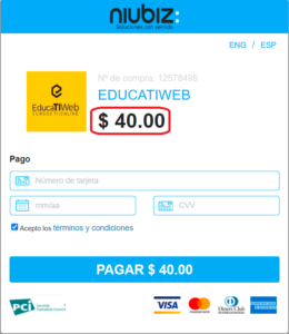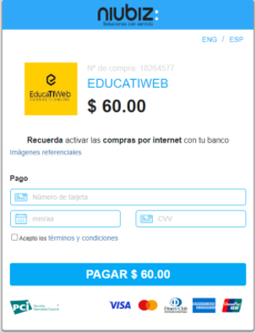 Pago con tarjeta de débito o crédito (en dólares) a través de NIUBIZ